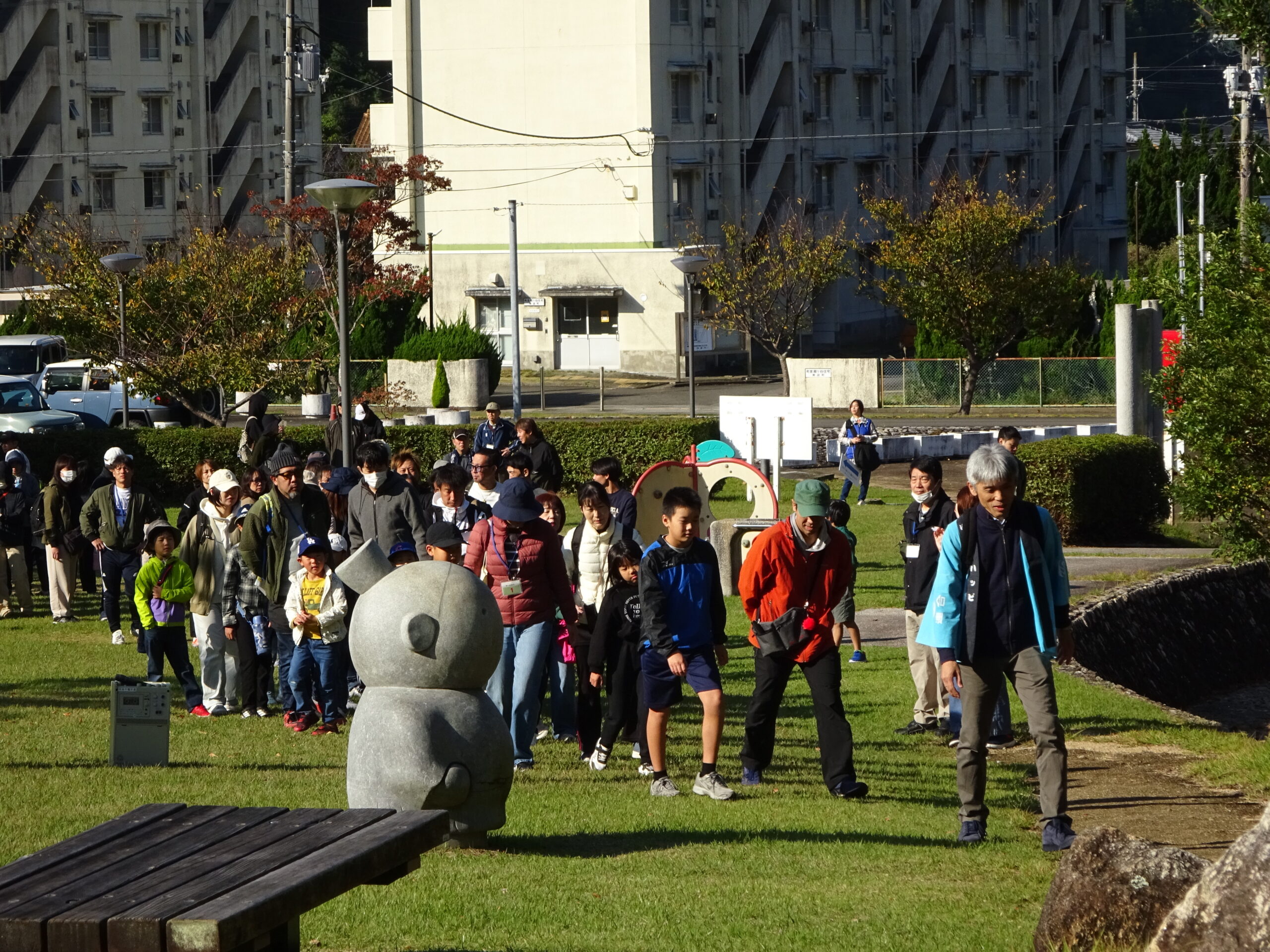 幼児の方から高齢者まで、幅広い方々が参加してくださり、竜宮公園では広い芝生のなかで仲良く遊ぶ光景かみられました。